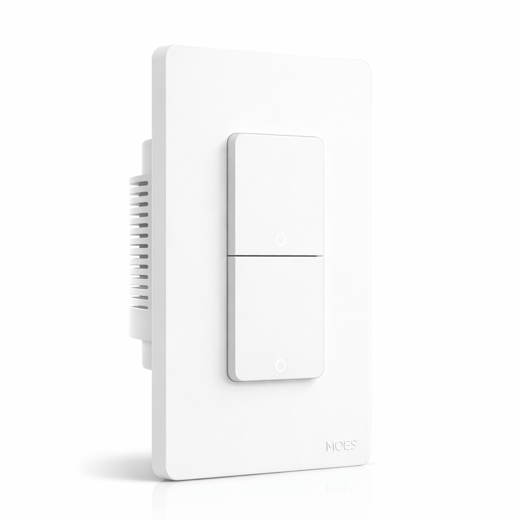 El Interruptor Inteligente WiFi MOES de 2 contactos es una solución práctica y eficiente para quienes desean controlar dos circuitos de iluminación de forma independiente desde un solo interruptor, integrando tecnología, diseño y comodidad en un mismo dispositivo. Es ideal para hogares modernos, apartamentos, oficinas y proyectos de domótica que buscan optimizar espacios sin saturar las paredes con múltiples interruptores.